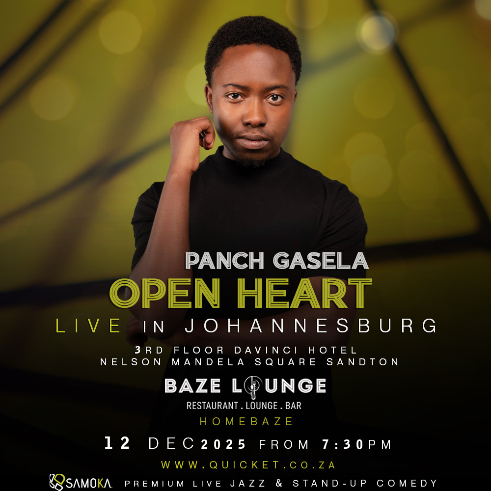 Panch Gasela - OPEN HEART - LIVE in Johannesburg at Bazelounge; Da Vinci Hotel 3rd Floor, Nelson Mandela Square, Sandton 12 Dec 2025