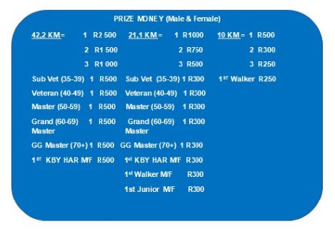 ENTRY FEES: 42,2km = R300, 21,1km = R240 &10km = R200