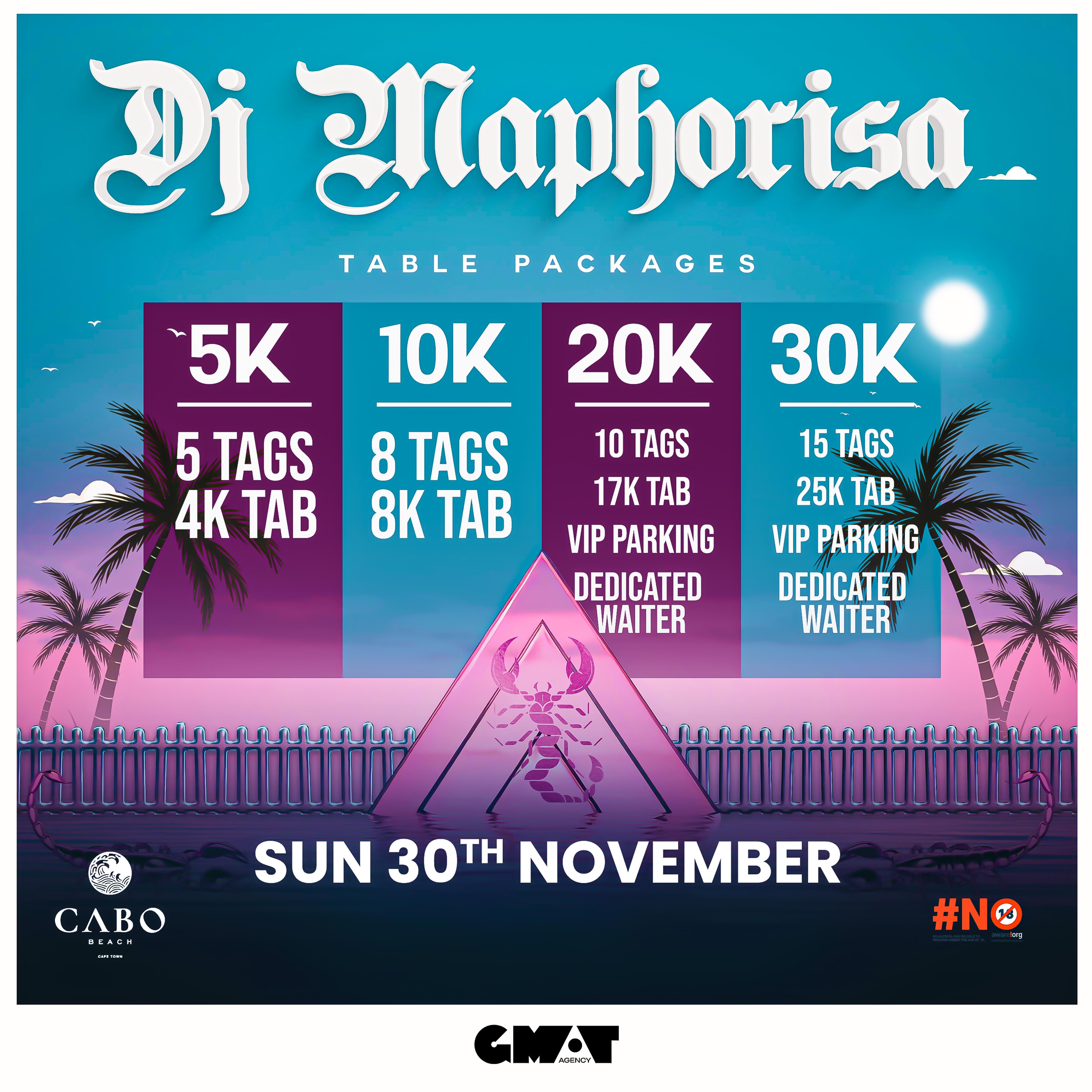 Set against the stunning backdrop of Cabo’s signature elegance, this premium day-time affair promises world-class performances, sun-kissed vibes, and Cape Town’s most stylish crowd. Feel the rhythm of Amapiano and Afro-house excellence as DJ Maphorisa and Amaroto light up the stage, taking you from daytime groove to golden-hour magic.
