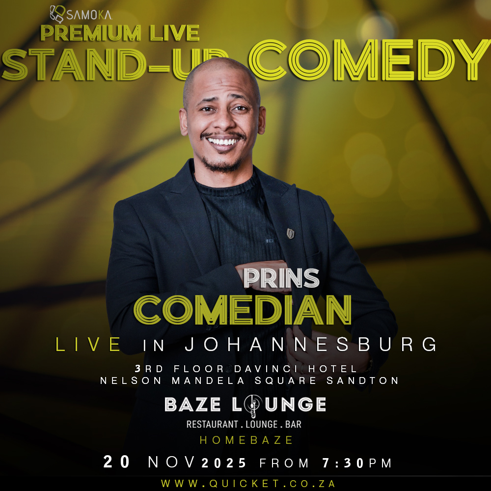Comedian PRINS LIVE in Johannesburg at Bazelounge; Da Vinci Hotel 3rd Floor, Nelson Mandela Square, Sandton 20 Nov 2025