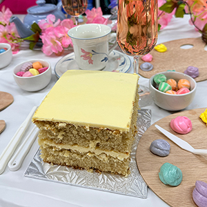 You’ll be given a 120 × 120mm square of moist vanilla cake, generously topped with smooth butter icing ready to become your edible canvas.