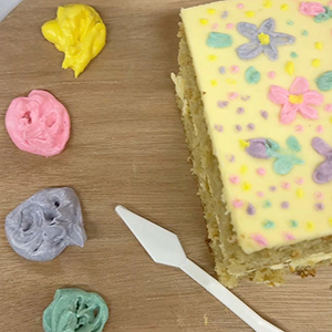Using five pre-mixed colours of delicious butter icing, you’ll dab, swirl, blend and paint your cake in any style you like. No rules. No pressure. Just playful, feel-good creativity.