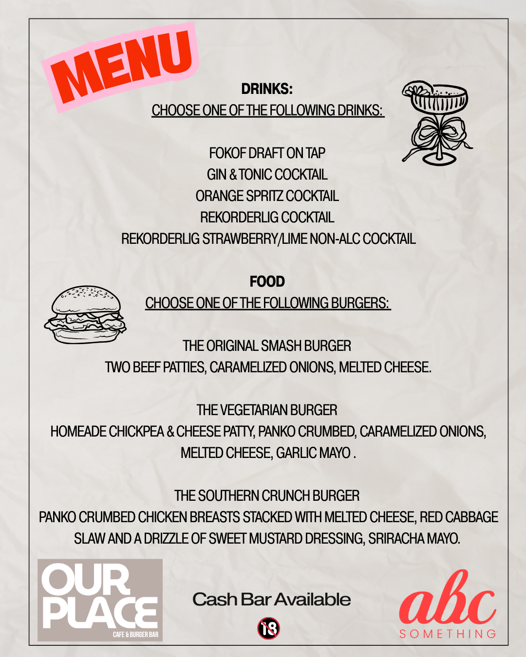 1 x Burger (Beef, Veg or Chicken) *See menu options