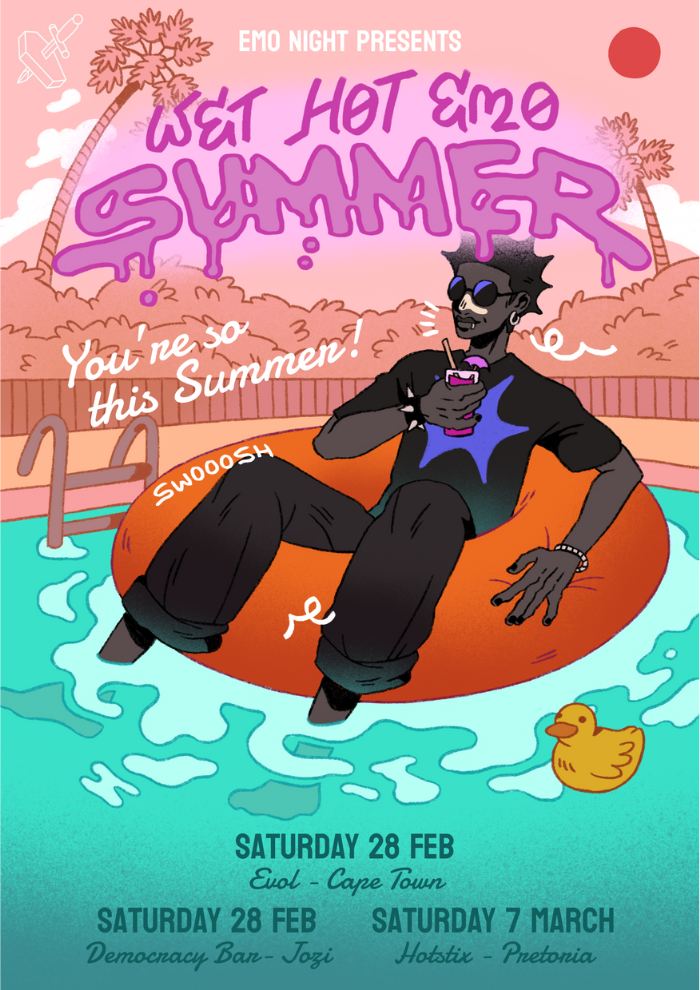 It wouldn’t be Emo Night without making it an experience that both Zara Larsson and Mark Hoppus would be proud of. To dial up the drama, we're bringing in Cape Town drag icon @ina_propriette to turn the poolside into a runway. We're taking drag and making it emo. Expect vogueing to Paramore, lip-syncing to Fall Out Boy, and death drops to My Chemical Romance.