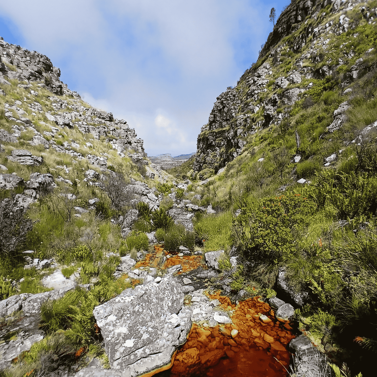 From here, the trail drops into the cool, shaded depths of Disa Kloof. This beautiful ravine is a highlight of the route, with indigenous forest, rocky pathways, and seasonal streams creating a tranquil, almost secluded atmosphere far removed from the city.