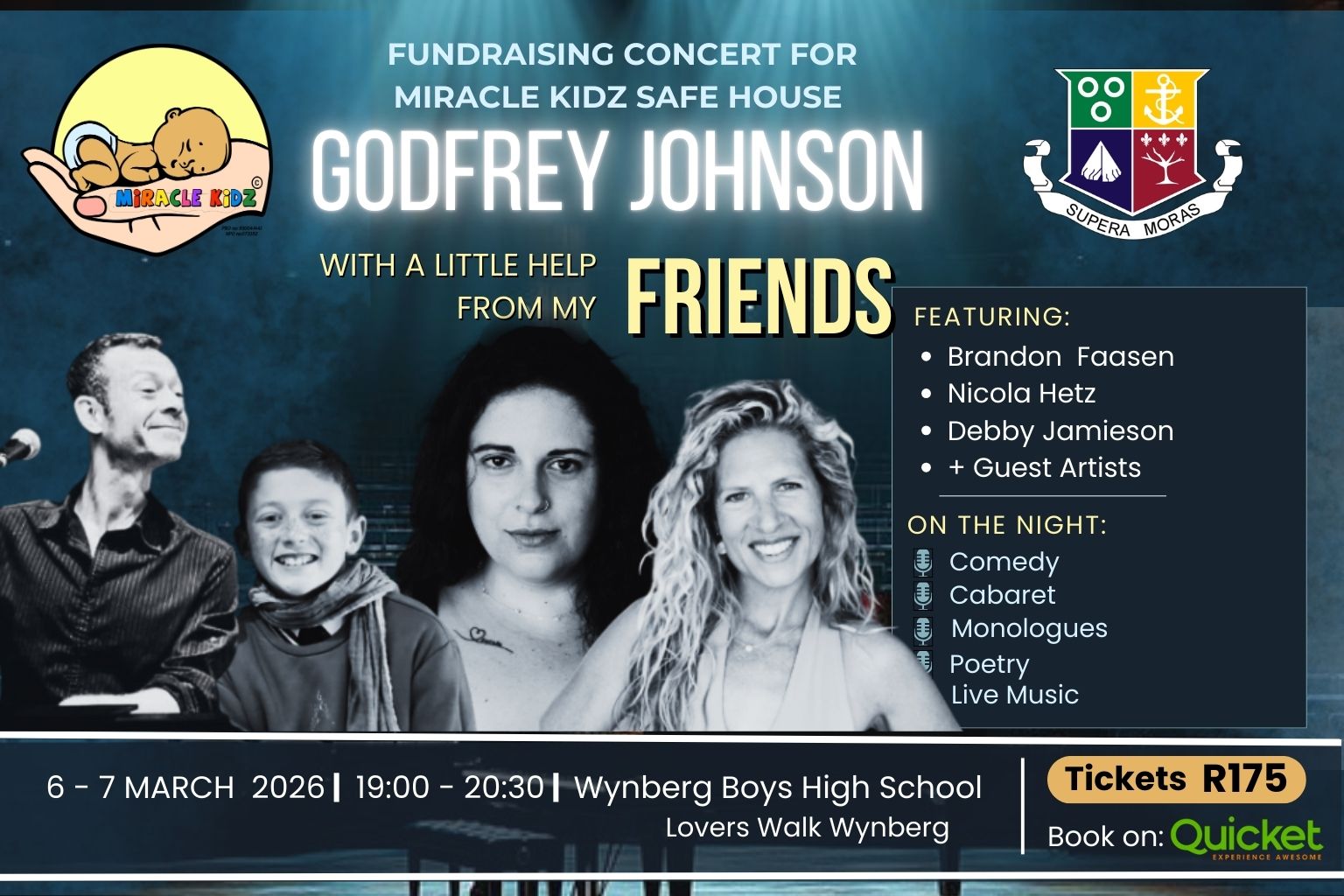 Godfrey Johnson hosts a fundraising variety concert at Wynberg Boys’ High – comedy, cabaret, poetry, and song in support of Miracle Kidz Safe House