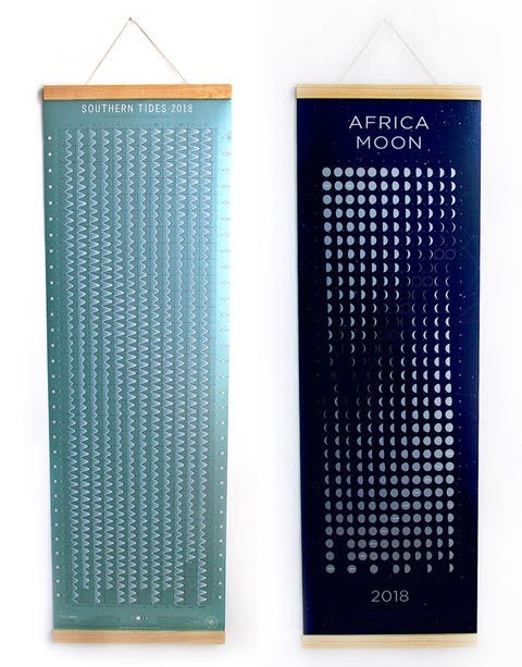 Fiona Berrisford and Chris Berens are parents to three children at Michael Oak. Their company Clip Clop makes a range of calendars, maps and stationery inspired by the tagline, “loving the living world around us”. Their beautiful Africa Moon poster shows the phases of the moon and was first produced for the year 2000 (the year of the birth of Peter, now in Class 11!). Southern Tides, which plots the rise and fall of the tides against an hourly grid, followed the next year. Both these posters will hang on the Art Wall in their new poster hanger frames.