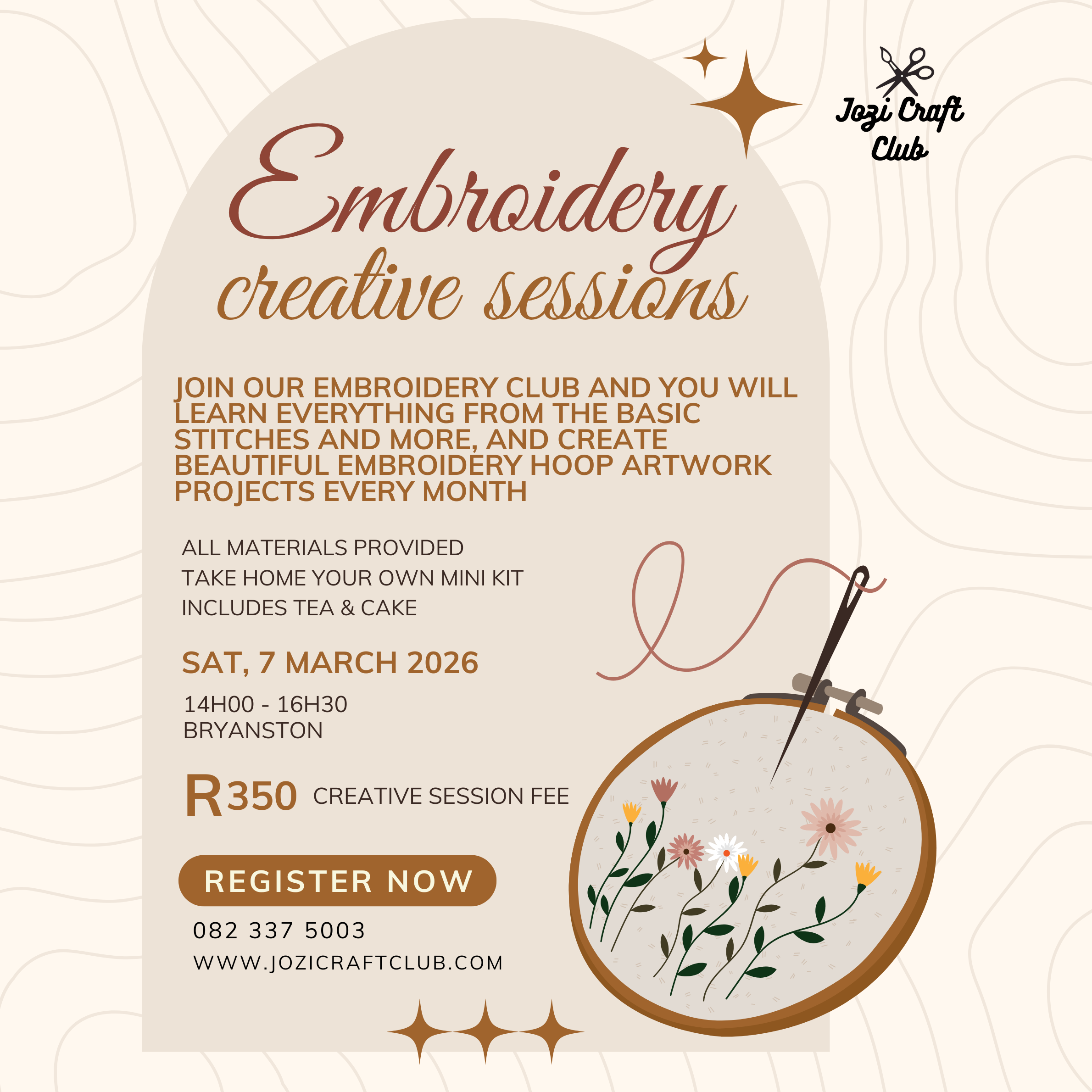 In March we will be hosting a beginner-friendly creative session that is perfect if you’ve always wanted to learn embroidery but didn’t know where to start. You’ll be guided through the basic stitches while creating a beautiful floral embroidery hoop artwork to take home.