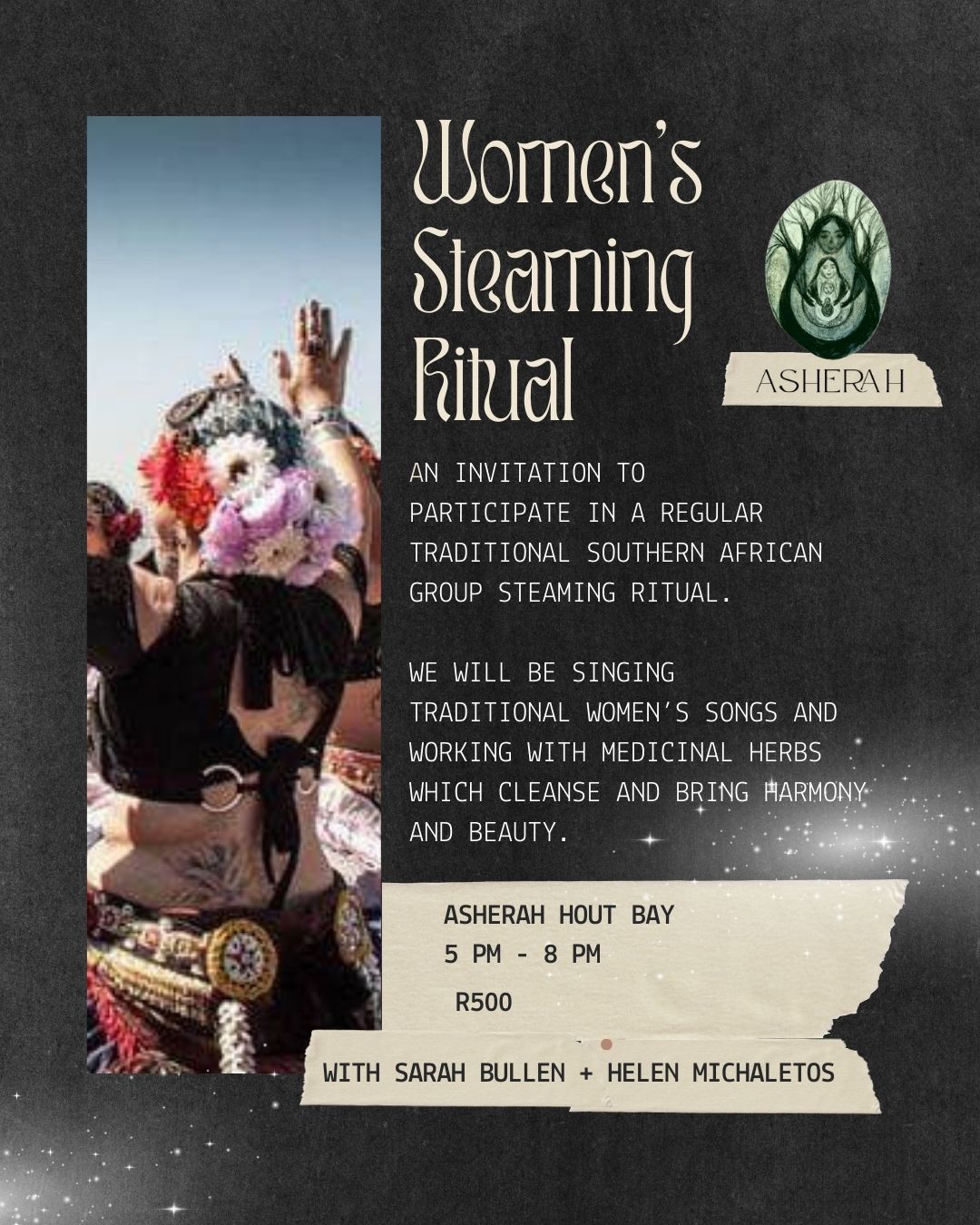 An invitation to participate in a traditional African group steaming ritual. We will be singing traditional women's songs and working with plant medicines, which cleanse and bring harmony and beauty.