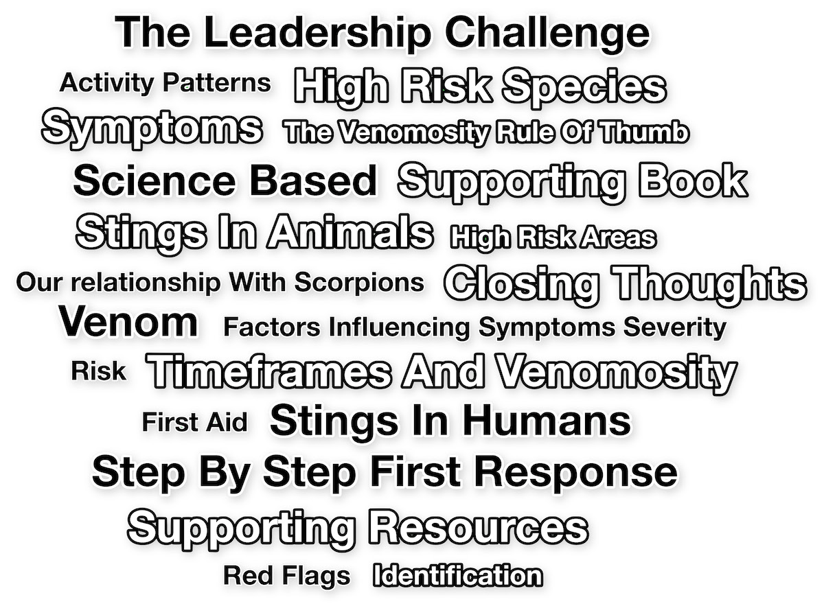 Jonathan will be presenting a Scorpion Sting First Response Course at Hoedspruit Reptile Centre on Sunday the 25th April 2026 from 10am to 1pm. The content of the course is based upon Jonathan's latest book, Essential Scorpion Sting First Response which offers an innovative science based first response framework that reduces the chance of being stung by a scorpion, and if there is a sting, how to ensure the best possible outcome for stings in humans and animals. It offers the knowledge and understanding to step up to the leadership challenge of scorpion sting first response in an organisation and community.
