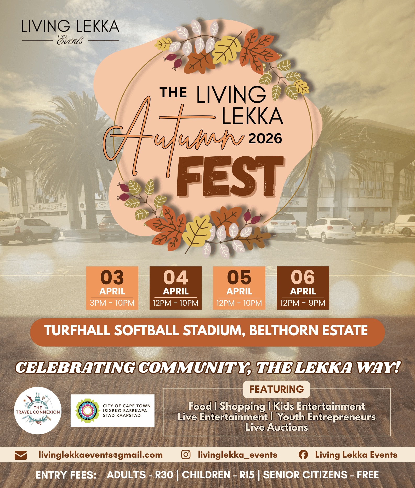 Living Lekka Autumn Fest 2026 takes place from 3 – 6 April 2026 at the Turfhall Softball Stadium, Belthorn Estate, bringing together community, culture, food, music, and entrepreneurship in one vibrant space.