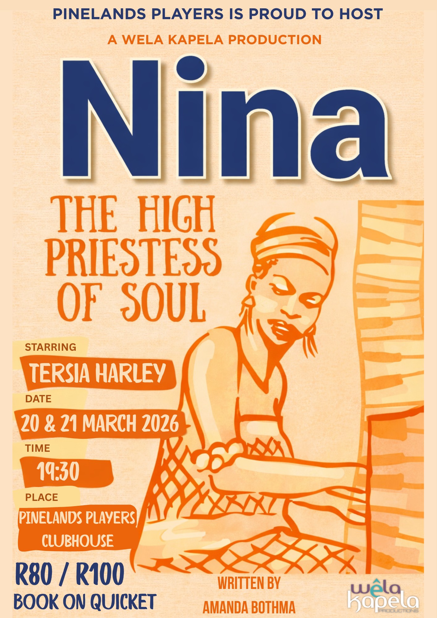 Step into the Pinelands Players Clubhouse as it transforms into a soulful, smoke-filled Parisian lounge for an unforgettable evening. The incomparable Tersia Harley takes the stage, wielding her masterful vocals and piano artistry to journey through the legendary career of Nina Simone.
