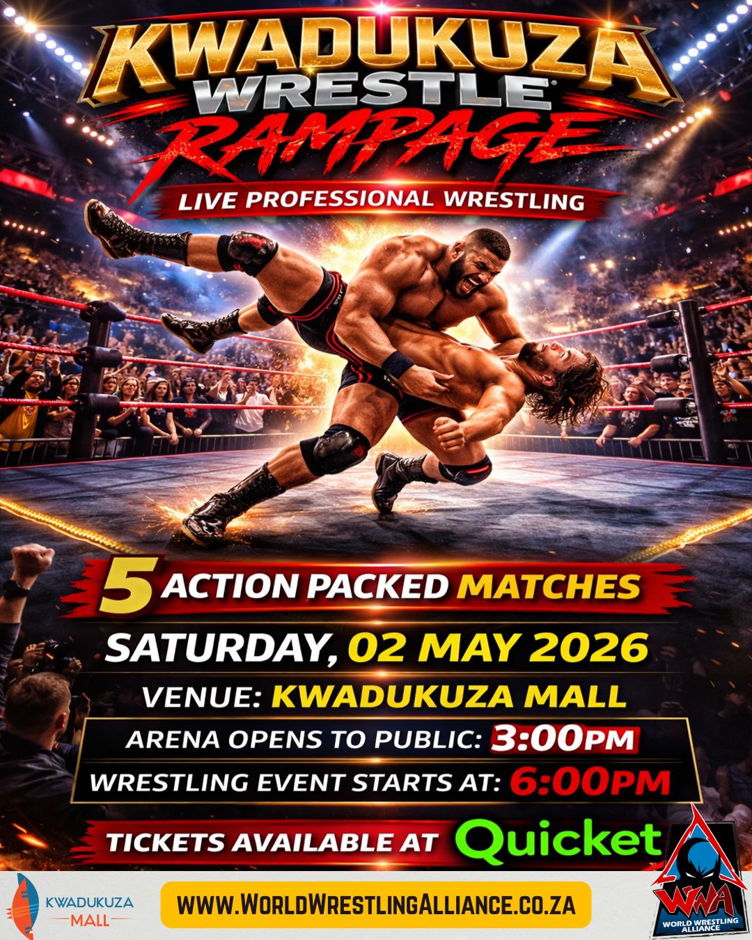 The most explosive night of sports entertainment is coming to town as KwaDukuza Wrestle Rampage brings exhilarating action, electrifying rivalries, and unforgettable moments to KwaDukuza.