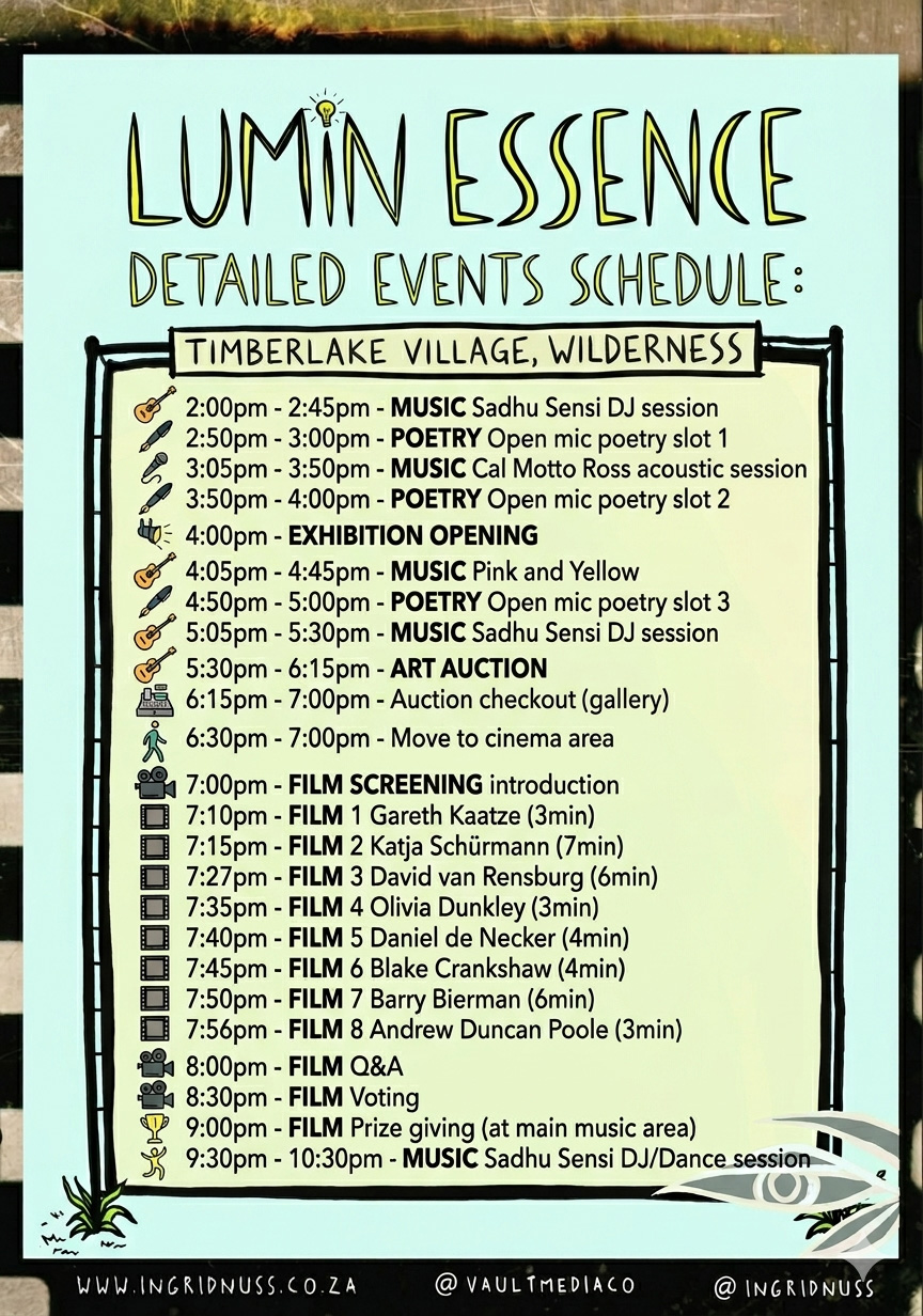 - Review the Schedule: Take a moment to browse the film lineup and screening times on our website (www.ingridnuss.co.za/lumin-essence) so you can plan your visit.