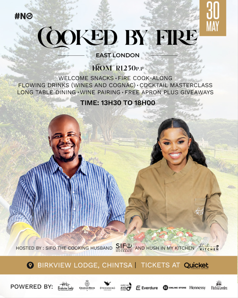 Award-winning brands, Hush In My Kitchen and Sifo The Cooking Husband, return to East London for a soulful Cooked by Fire Experience at Birkview Lodge — a tranquil farm in Chintsa with breathtaking sea views and natural beauty, where live DJ sets carry the soulful rhythm of the experience