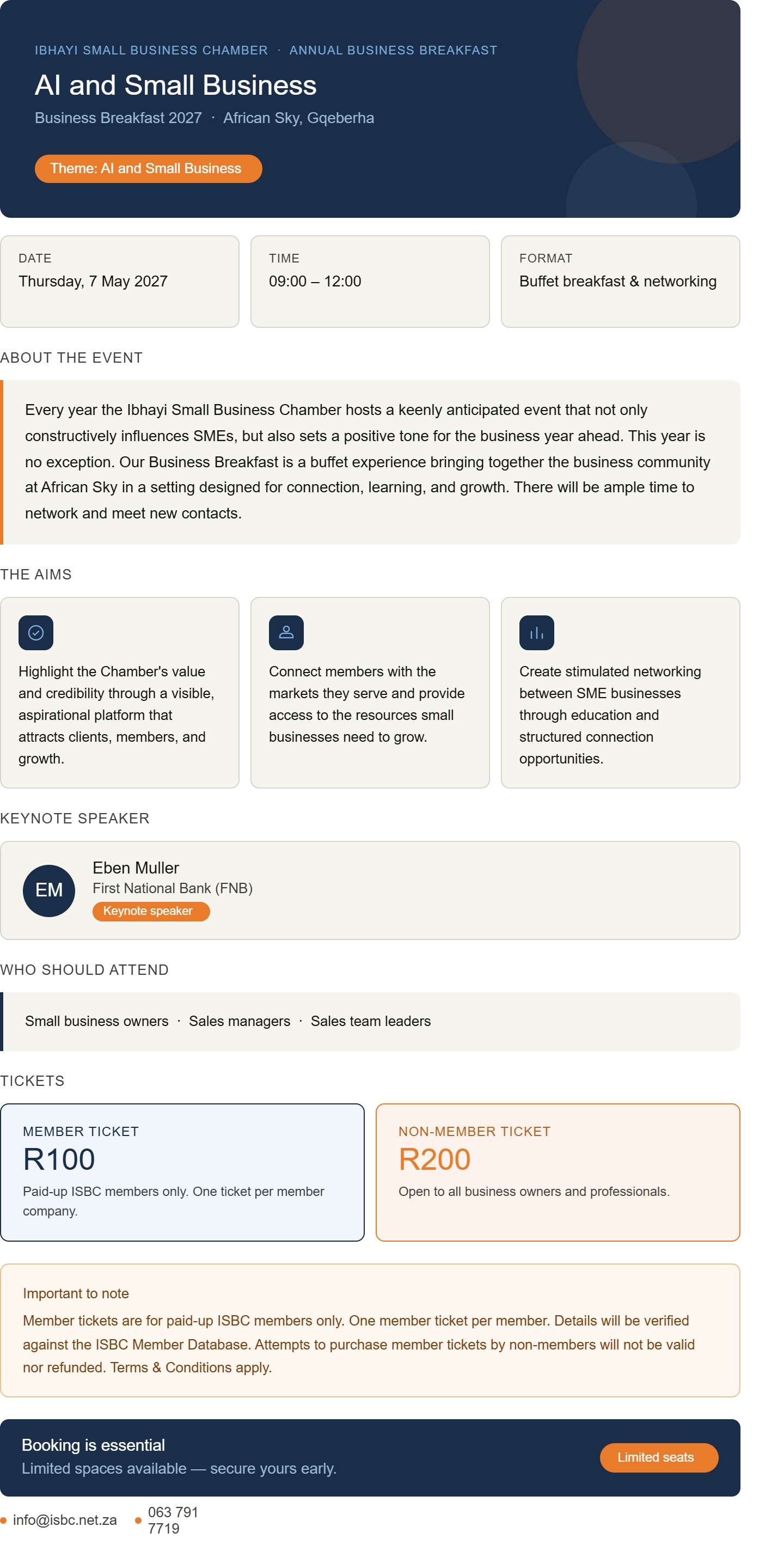 Ibhayi Small Business Chamber / First National Bank Business Breakfast
