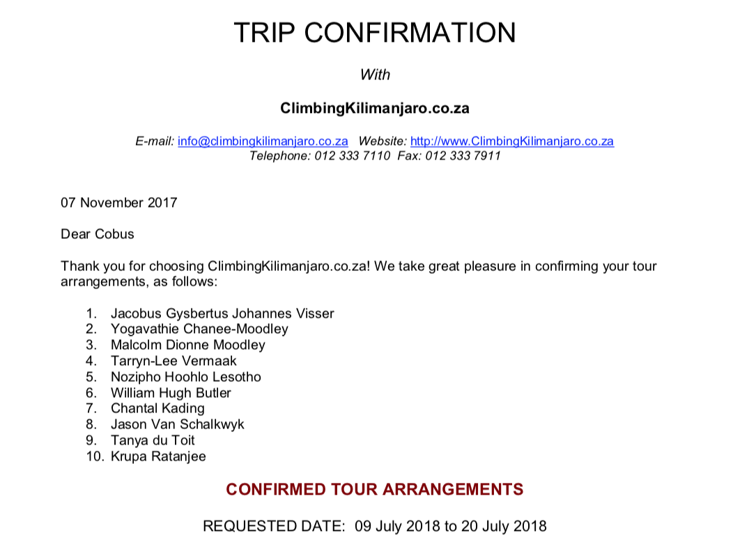 ü A comprehensive Climbing Kilimanjaro.com travel info pack