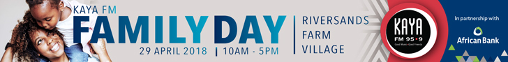 Family time is quality time. Spend the day with your loved ones on the beautiful lawns of the Riversands Farm Village in Fourways, at The Kaya FM Family Day - brought to you in proud partnership with African Bank. Let the kids run free while you sing along to great live music and dance to the beats of your favourite Kaya FM Djs, on Sunday the 29th of April.