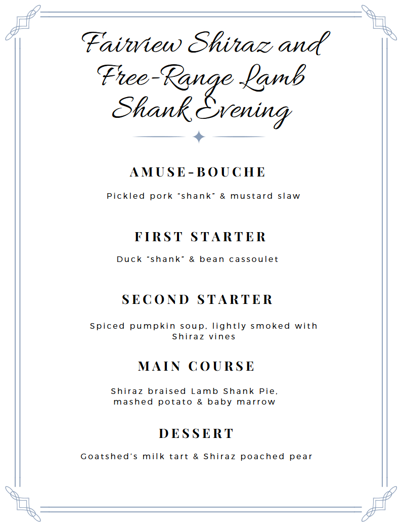 Fairview Shiraz and Free-Range Lamb Shank Evening