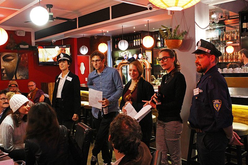 All guests are given a character brief including their background, relationship to the victim and alibi three days prior to the event. They are encouraged to arrive in character, ready to crack the case. Upon your arrival you will receive a welcome drink and will be shown to your table, where you can brush up on your backstory before we get started. Once you are settled in you will be given a chance to browse our selection of props and costume pieces and get into character.