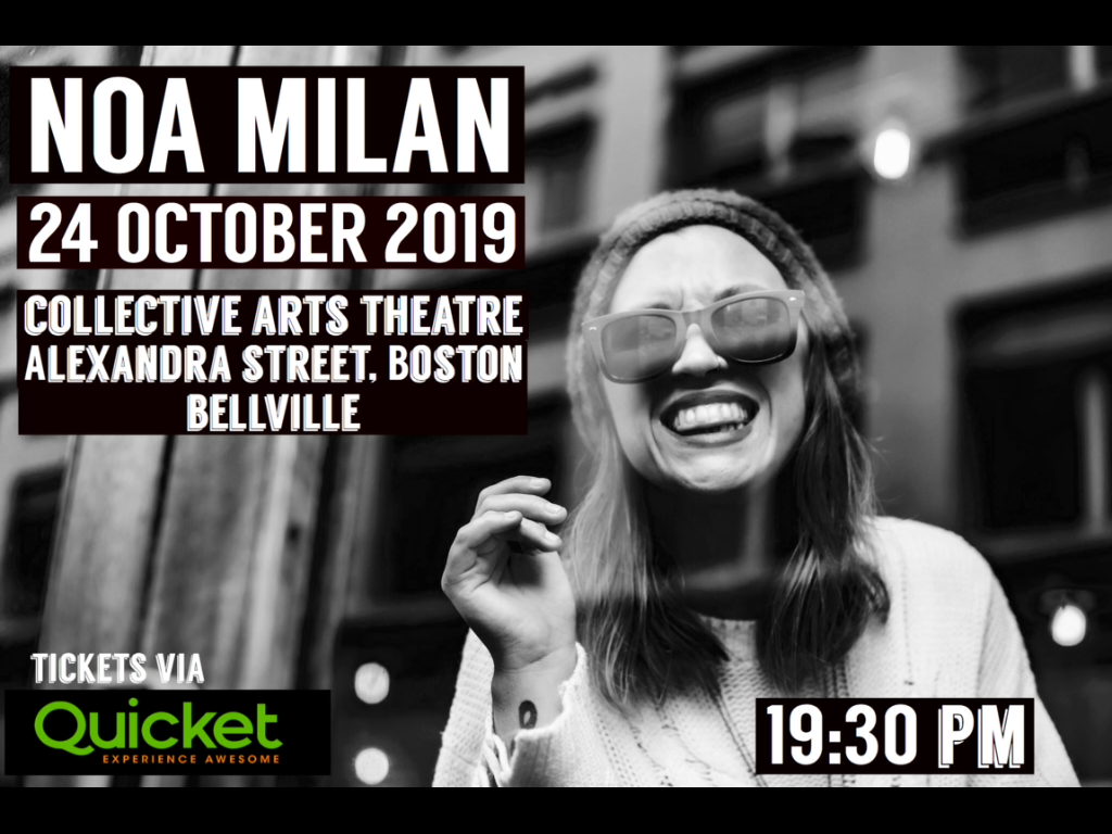 Noa Milan will be performing live at the Collective Arts Theatre, Alexandra street, Bellville, on Thursday 24 October. Tickets are R80 and limited seating is available. Show starts at 19:30pm. Make sure to book early, tickets only available at the door if there are any left! Dont miss out on this warm, intimate musical event.