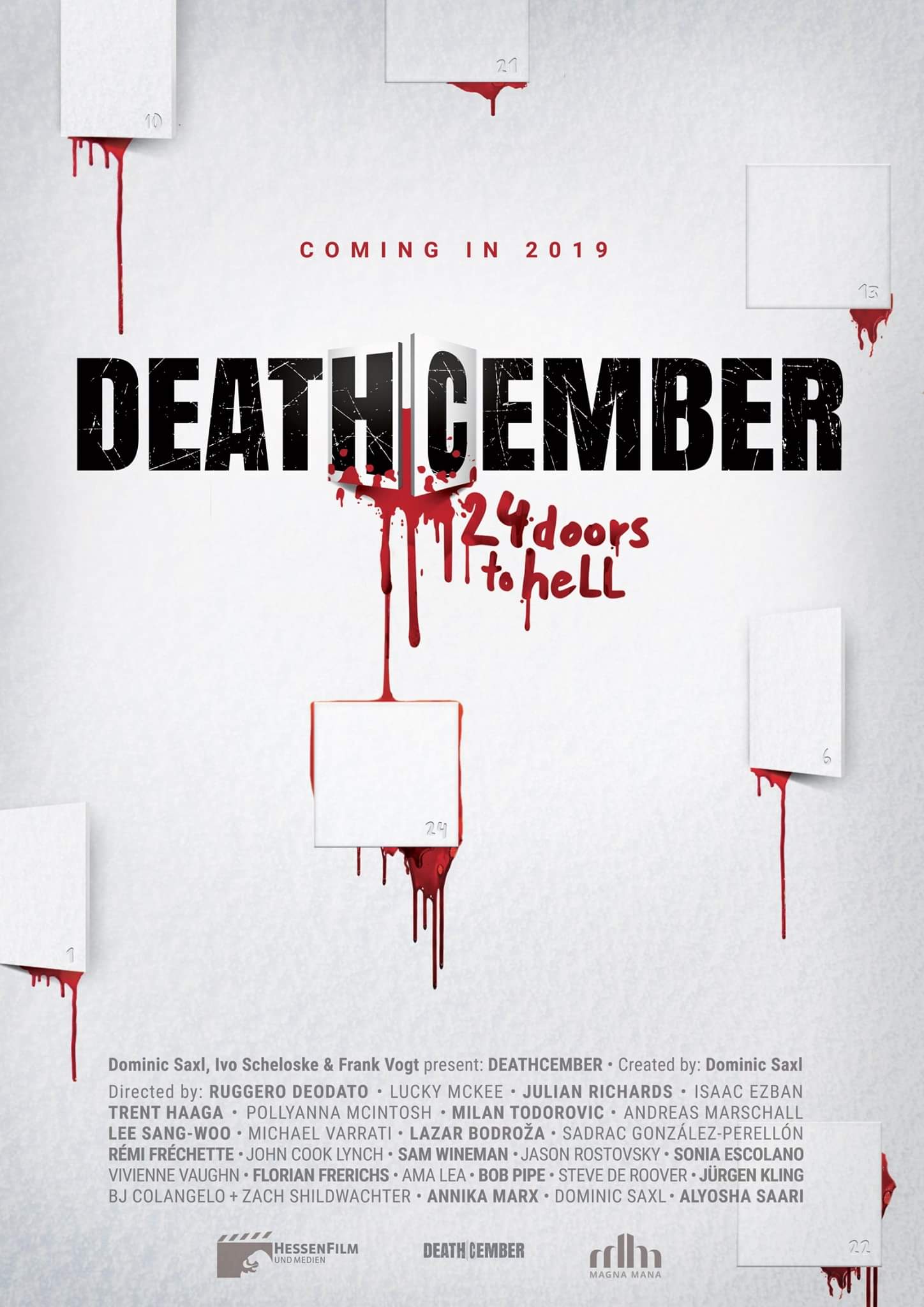 DEATHCEMBER is an advent-themed Horror Anthology of 24 creepy, funny, crazy chapters set around the festive season, by a variety of directors, including Dominic Saxl, Pollyanna (The Walking Dead) McIntosh, Michael Varrati, Lazar Bodroža, Florian Frerichs, Isaac Ezban, Sonia Escolano, Bob Pipe, Steve De Roover, Jürgen Kling, Ama Lea, Sadrac González-Perellón, Julian Richards, Lee Sang-woo, Vivienne Vaughn, Ruggero Deodato, Sam Wineman, Andreas Marschall, Lucky McKee, Milan Todorovic, Rémi Fréchette, Jason A. Rostovsky, John Cook Lynch, Trent Haaga, Annika Marx, BJ Colangelo, Zach Shildwachter and Alyosha Saari.