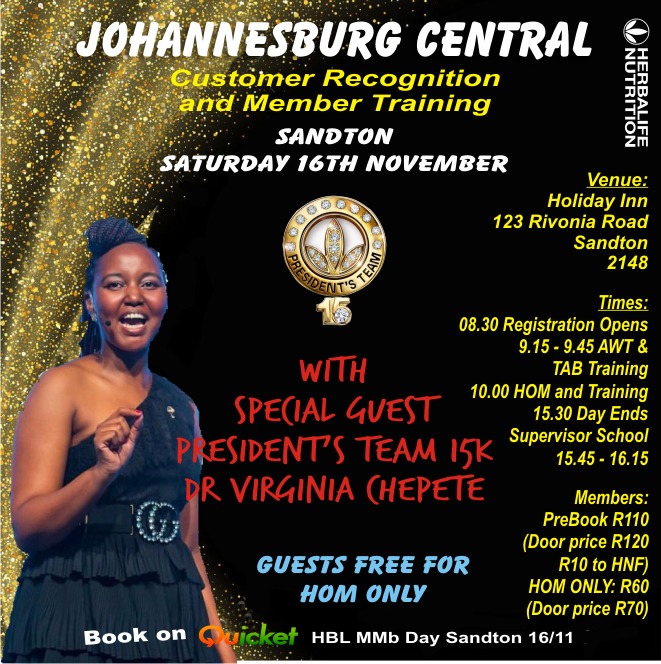 WE ARE FEATURING THE ONE AND ONLY 15K PRESIDENTS TEAM MEMBER ALL THE WAY FROM BOTSWANA AS OUR SPECIAL GUEST WITH AN ADDED EXTRA TRAINING