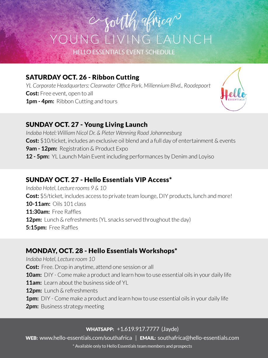 Young Living has some really fun things in store for you to ensure its a jol on the day, Hello Essentials plans to add to the vibe and welcome you to our tribe.