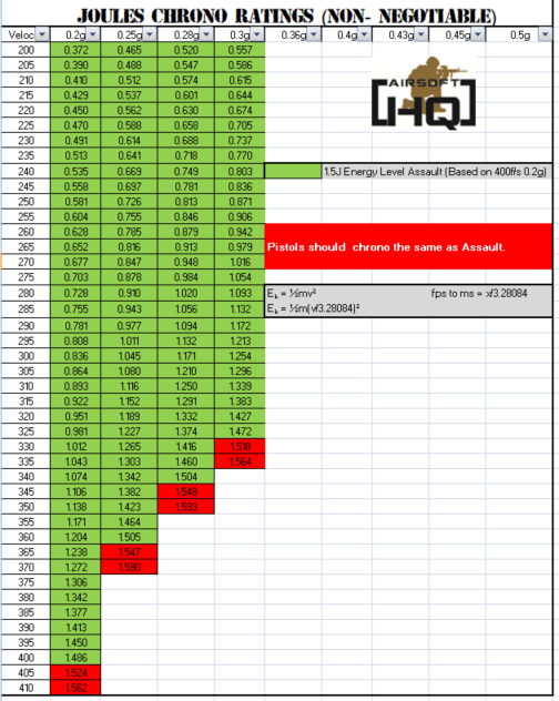 AIRSOFT CHRONOGRAPH JOULES RATINGS FOR ALL WEAPONS IN KILLHOUSE (HARDCORE)