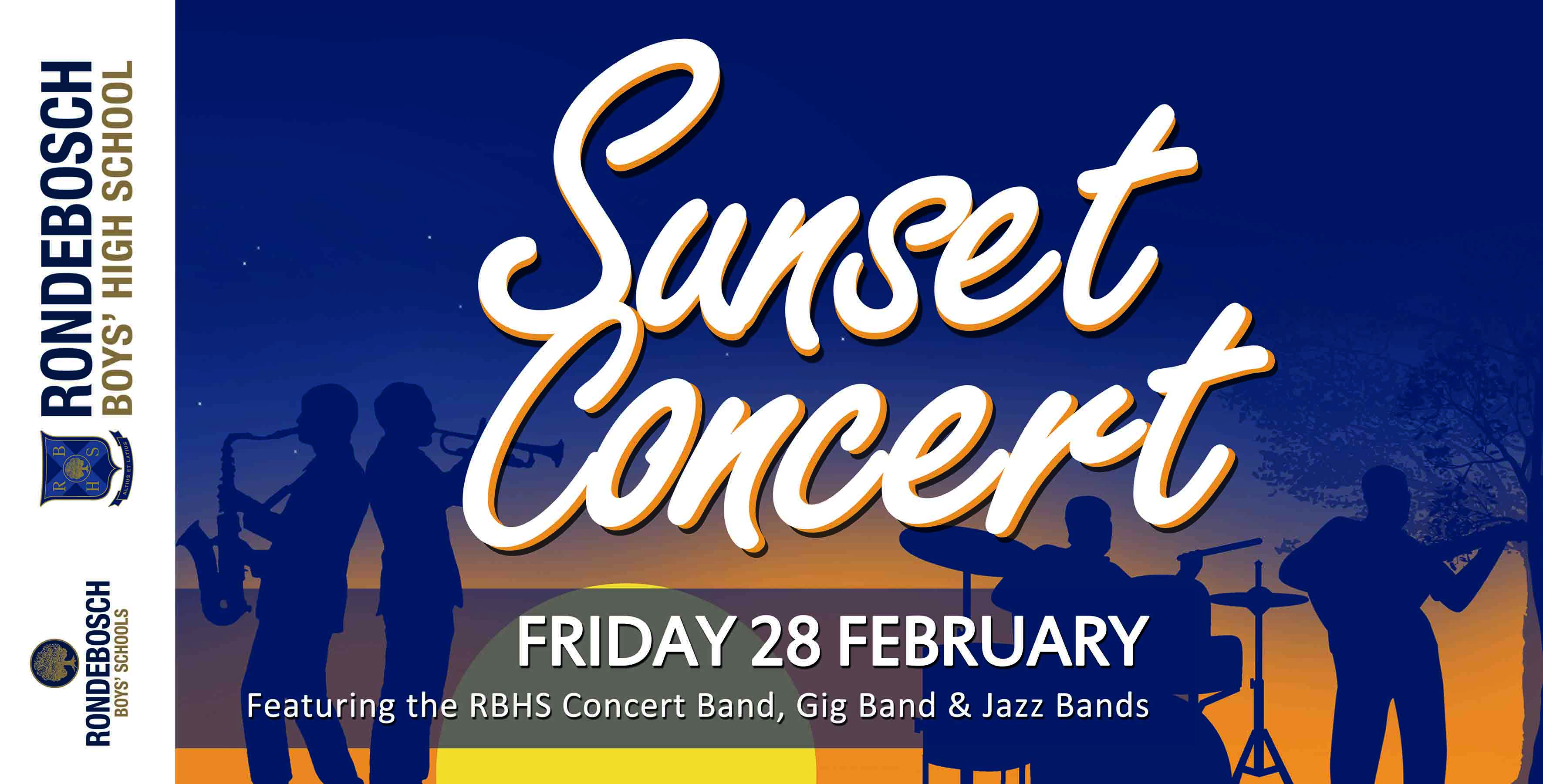 The Rondebosch Boys' High School Music Department is renowned for producing top-achieving music students. The upcoming Sunset Concert showcases a variety of instrumental bands and ensembles including a 44-piece Concert Band, 14-piece Senior Jazz Band, 12-piece Gig Band, and the Junior Jazz Band. The evening will showcase a variety of music genres including, Jazz, Classical, Pop, Rock, and Disney Classics.