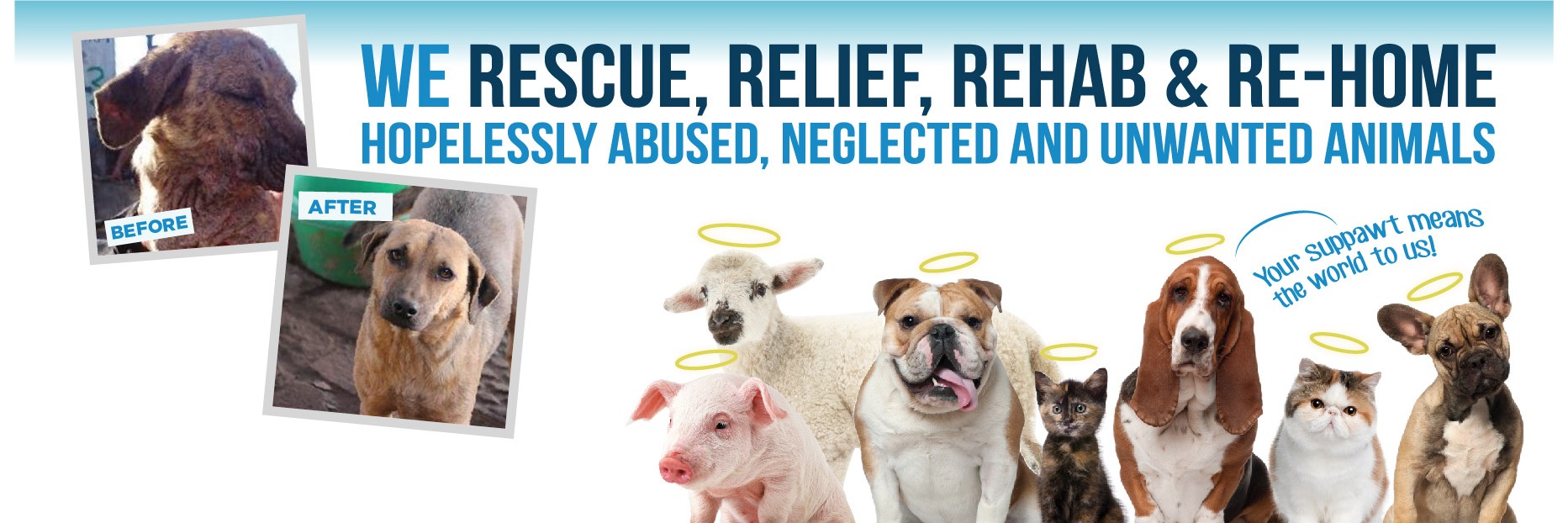 We rescue hopelessly abused, neglected and unwanted animals, to ensure they never have to suffer again, by first rehabilitating them and then re-homing them into loving homes. We provide relief for animals who will have no quality of life or no positive prognosis for recovery, by humane euthanasia.