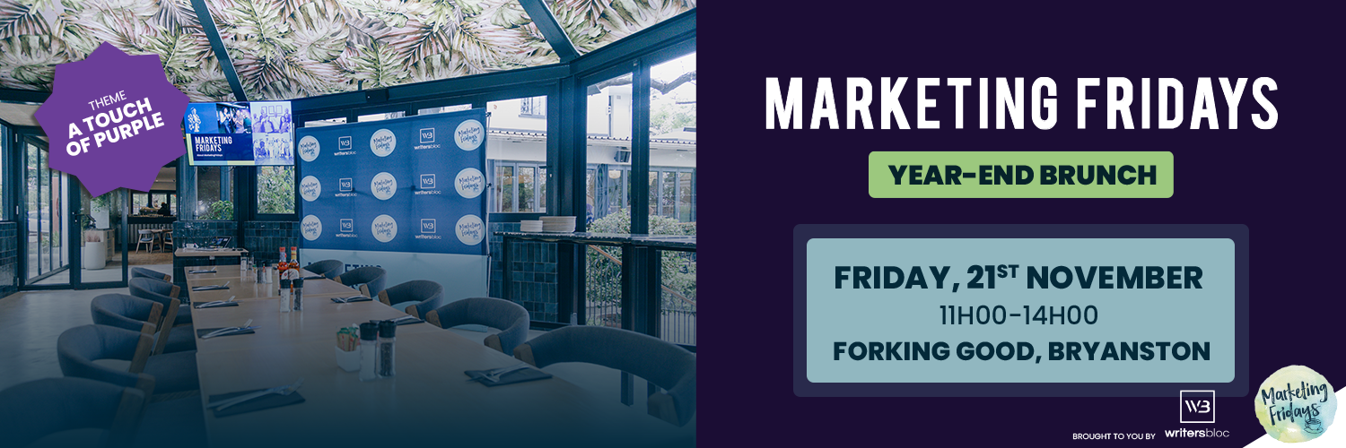 Great news! We are hosting a Year end brunch to close out the year. Think of this as a Year end session where you are able to enjoy brunch with fellow Marketers, and also get to enjoy great food and just overall great company. As always, the session and setup will be very well considered and will allow for great connections and insightful conversations. The venue is preparing a nice menu for us to have a great time.