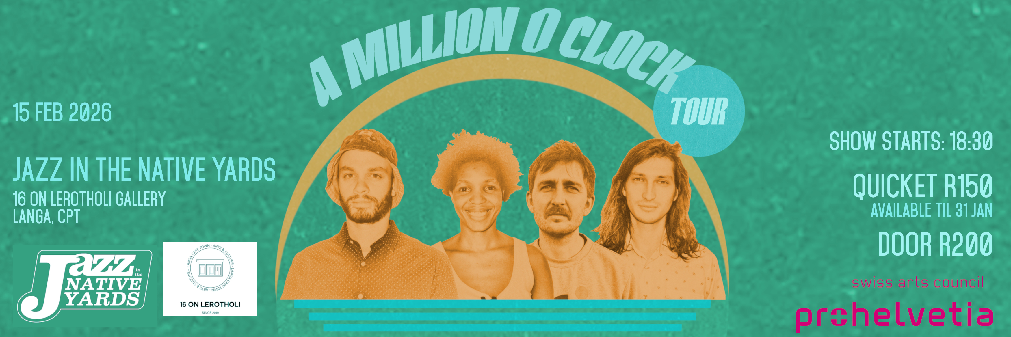 A Million O Clock is a South African–Swiss jazz collective led by saxophonist Benedikt Reising, featuring Thandi Ntuli, Shane Cooper, and Paul Amereller. Blending South African musical sensibilities with European jazz aesthetics, the group’s music is grounded, open, and deeply improvised.
