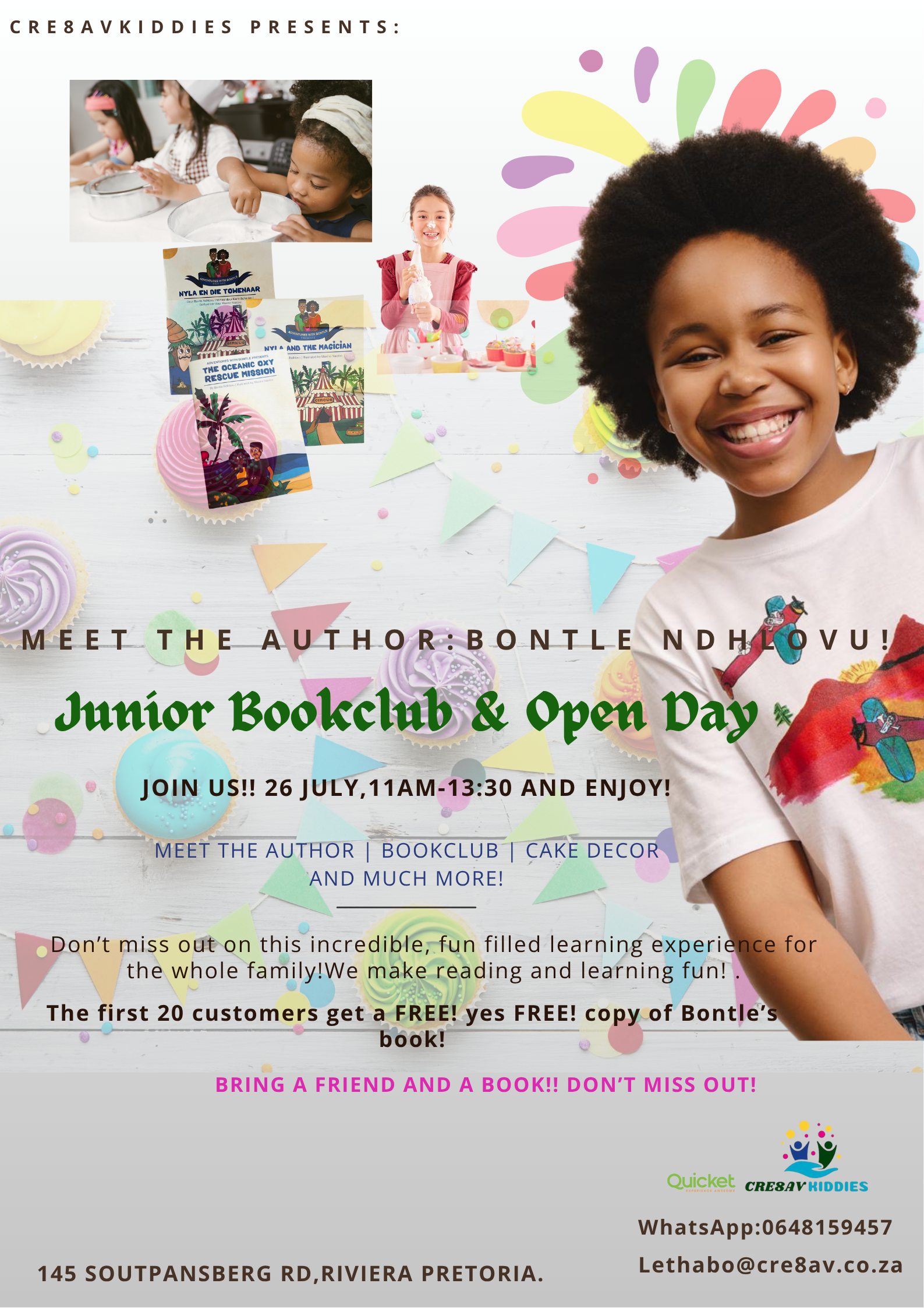 BookClub for kids? Absolutely yes! Reading can be fun..Come and join us and get to meet 12 year old author Bontle Ndhlovu who is also listed as a finalist by the World Literacy Foundation.