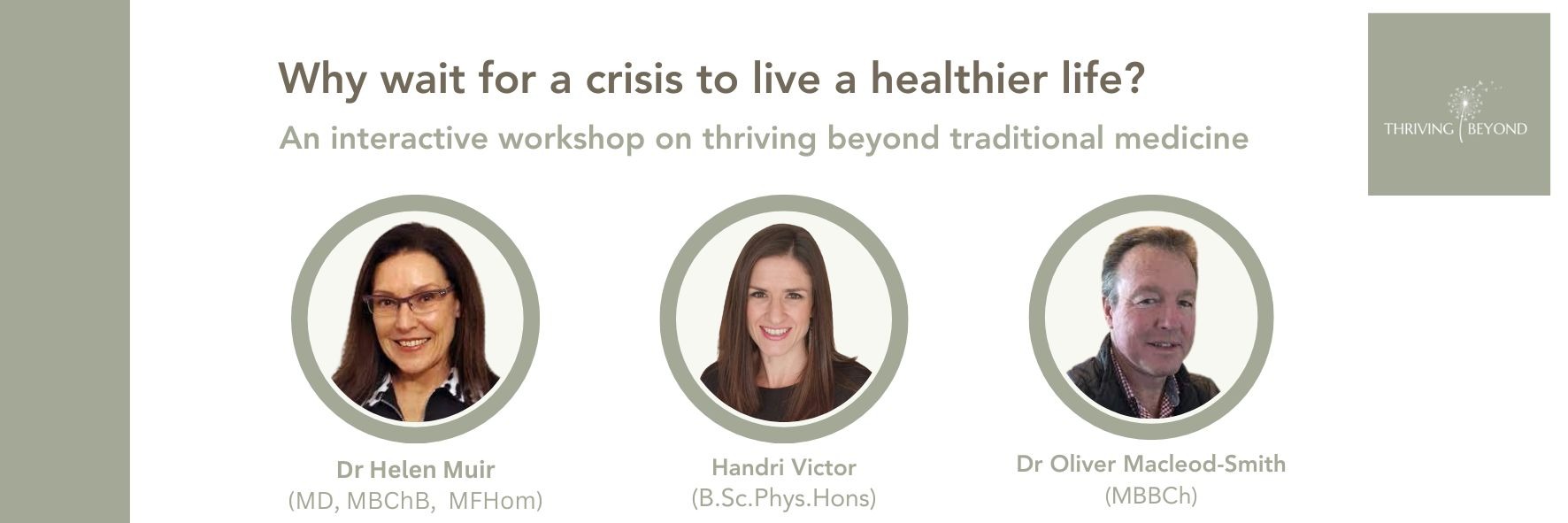 "In my journey through stage four breast cancer to remission I discovered many insights from some amazing integrative practitioners that I felt I needed to showcase for people struggling with health issues and chronic diseases. These insights would have been hugely helpful at the beginning of my journey. This inspired me to start pulling together these events to share my experience and help enrich someone else’s journey. I couldn't have done it without these three amazing people in my life". - Nicki von Arx