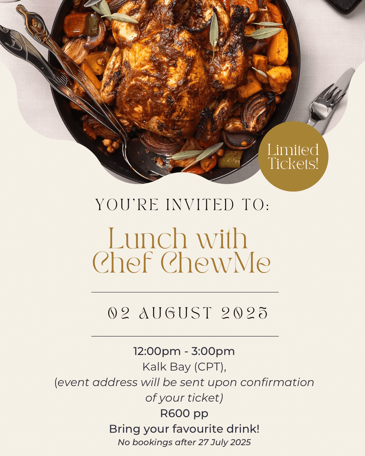 Join me for an intimate Afro-fusion lunch experience overlooking the stunning views of Kalk Bay and Kalk Bay Harbour