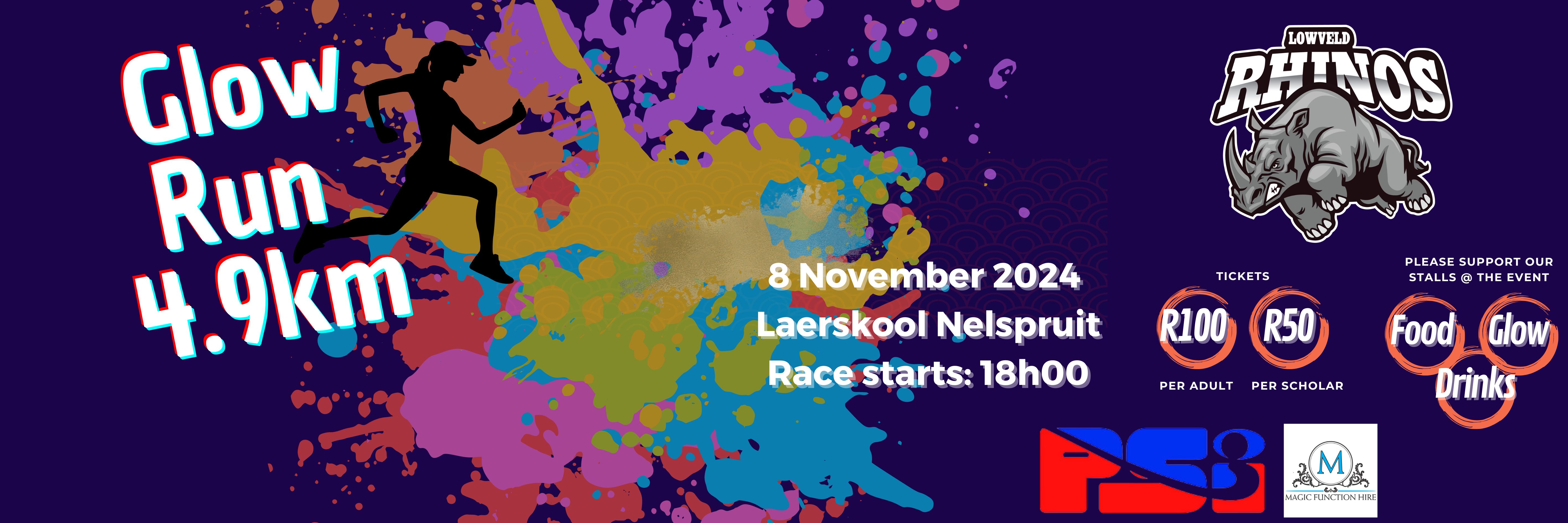 Join the Lowveld Rhino's Hockey players, for a fun filled Glow Run at Laerskool Nelspruit as they raise funds for their annual PSI Tournament in Cape Town