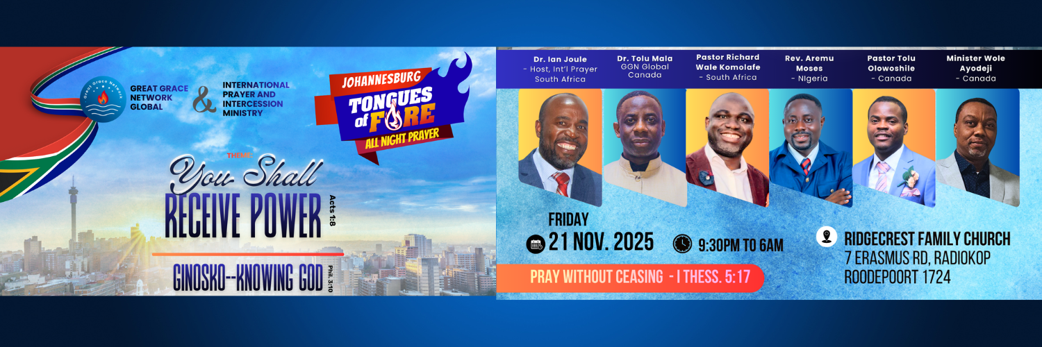 Hosted by Great Grace Network Global and the International Prayer & Intercession Ministry, this all-night gathering will stir revival fires and deepen your intimacy with God.