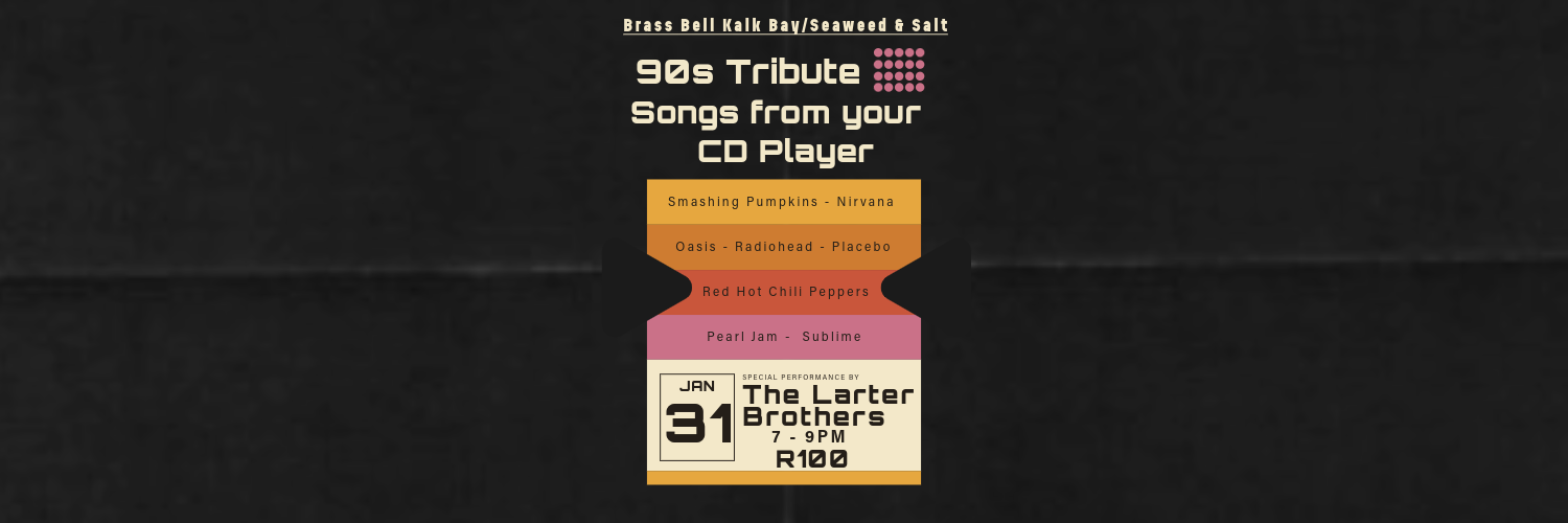 Get ready for an unforgettable musical experience as The Larter Brothers hit the stage for an electrifying tribute to the iconic sounds of the 90s on January 31st! Relive the raw energy of grunge rock and the classic vibes of garage bands as they perform your favorite tracks live at The Brass Bell.
