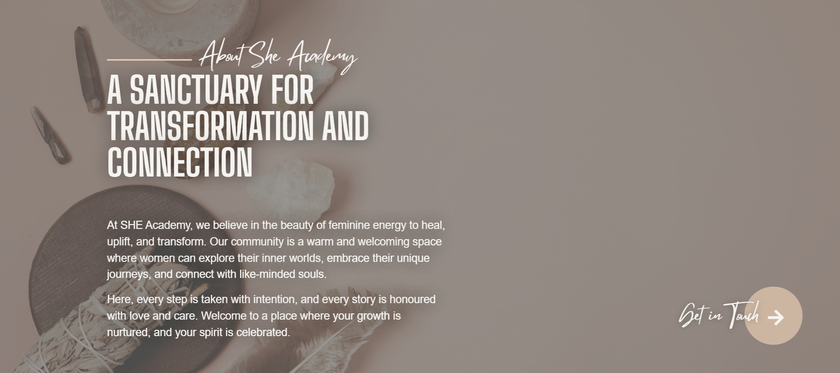 At SHE Academy, we believe in the power of feminine wisdom and the profound journey of self-discovery.