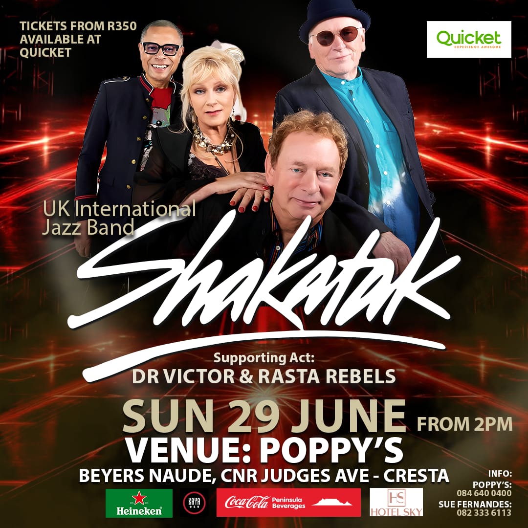 An evening of International UK Jazz band Shakatak performance and entertainment @ Poppy's Cresta