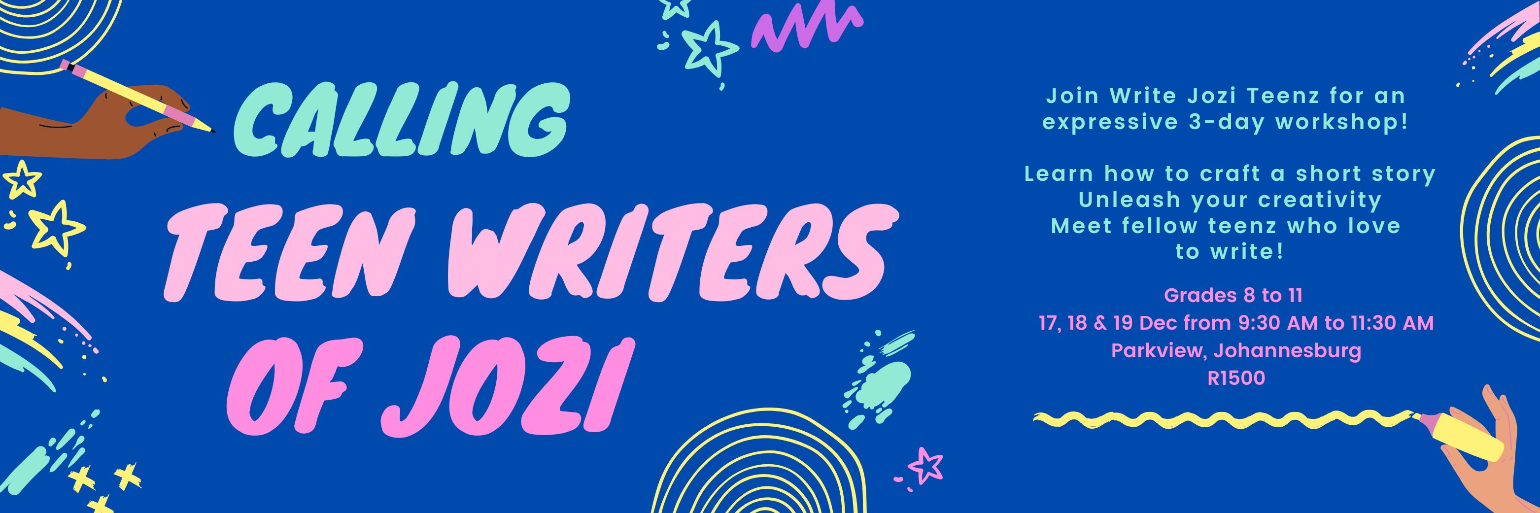 Write Jozi Teenz is a creative space for teens who love to write – and who take their craft seriously. We facilitate workshops aimed at developing young writers through creative expression, gentle accountability, the love of story-telling and a passion for words and ideas. From flash fiction to plays, comic strips to poetry – and beyond, we explore across all genres, styles and formats.