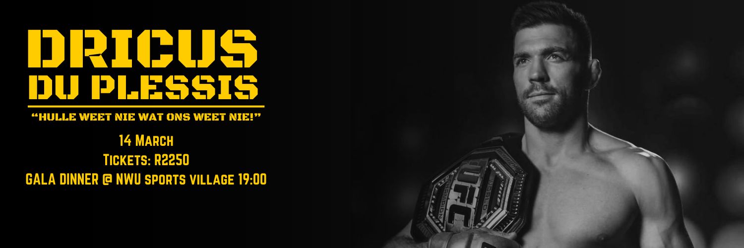 NWU Potchefstroom SCC is hosting a VIP Gala evening with the Current UFC Middleweight Champion, our very own, Dricus Du Plessis