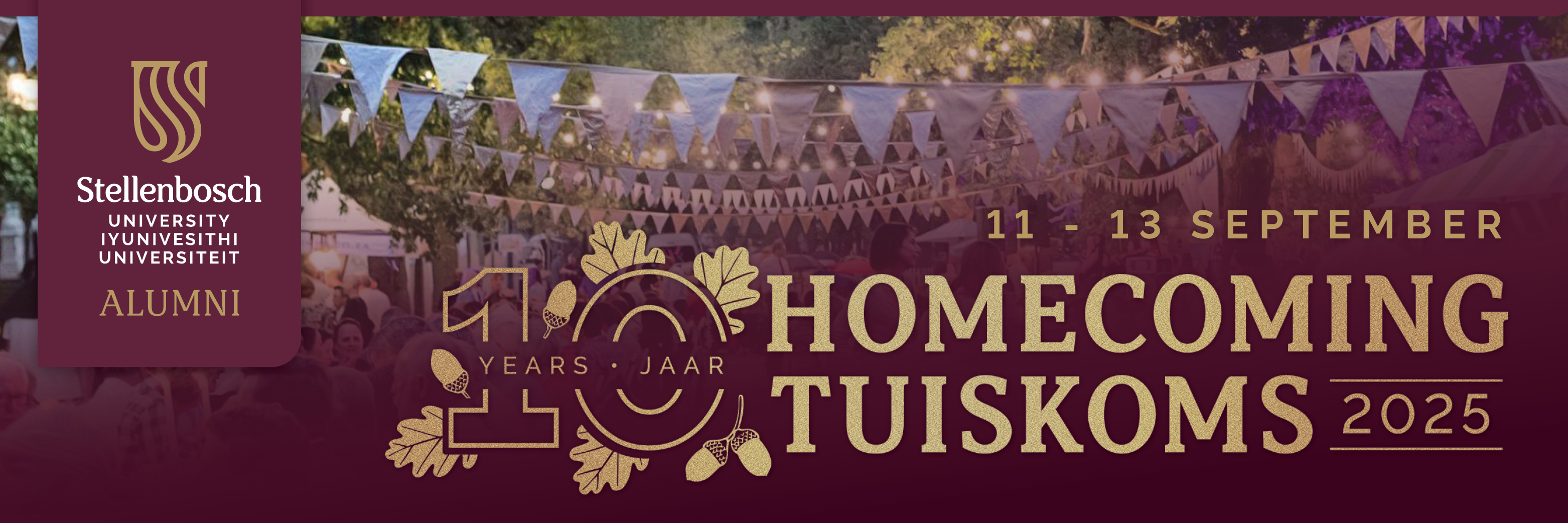 Maties who graduated with a BAcc Honours in 1995, 2005, and 2015 are warmly invited to celebrate their 10-, 20-, and 30-year reunions at Homecoming 2025 on 13 September 2025. Come together as a class at the Van der Sterr building, participate in a campus tour and relish a fantastic gathering exclusively for your class.