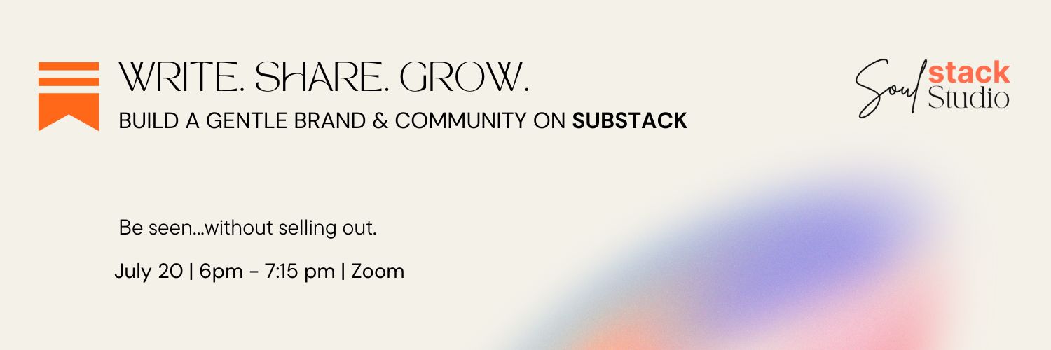 Substack is a simple writing platform with over 5 million users that lets you grow a personal brand, share your voice, build a community and sell your products. Whether you’re dreaming of starting a newsletter (or blog), building a gentle online presence, or offering your services in a way that feels authentic, this live session will guide you step-by-step, without overwhelm.