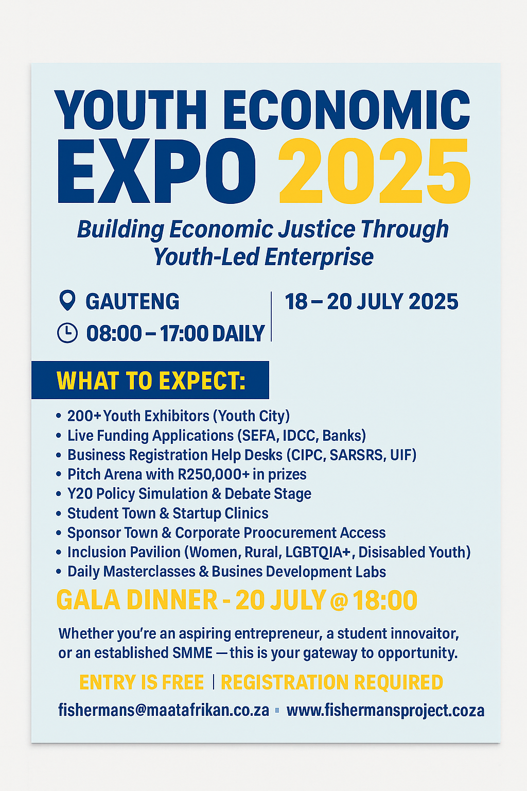 Calling all young entrepreneurs! Join 5,000 youth-led businesses from across South Africa for a game-changing day of enterprise support, funding access, business registration, training workshops, and live pitching opportunities.