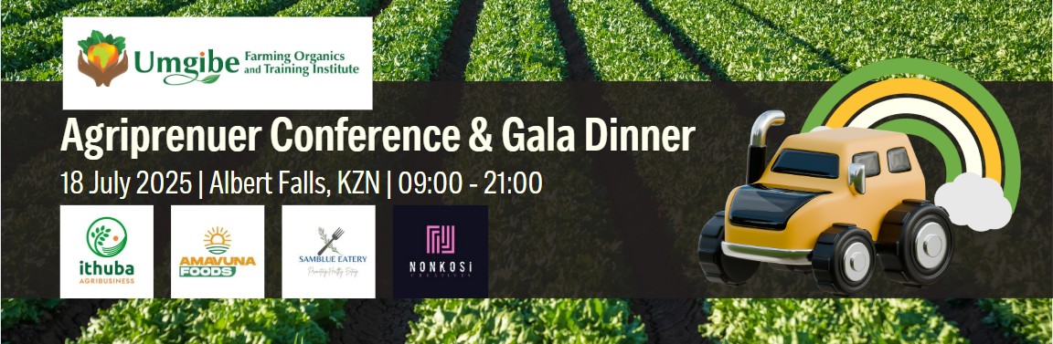 Umgibe Farming Organics and Training Institute, in collaboration with Ithuba Agribusiness, Amavuna Foods, Samblue Eatery, and Nonkosi Creatives, proudly invites you to the Agripreneur Conference & Gala Dinner — a flagship celebration of innovation, sustainability, and excellence in the agriculture sector.