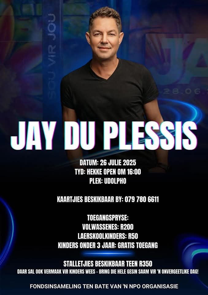 Jay du Plessis maak die verhoog warm en ons sorg vir kos, drankies en groot gees!