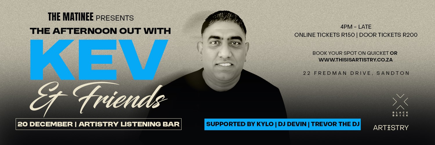"Get ready for a sultry afternoon of smooth vibes and soulful sounds! Join us for an unforgettable afternoon out with Kev and Friends, featuring KEV, KYLO, DJ DEVIN (94.7) & TREVOR THE DJ live on the 1's and 2's. Expect timeless classics and modern hits that'll keep you grooving all afternoon long. Let's vibe out to the best of RnB!