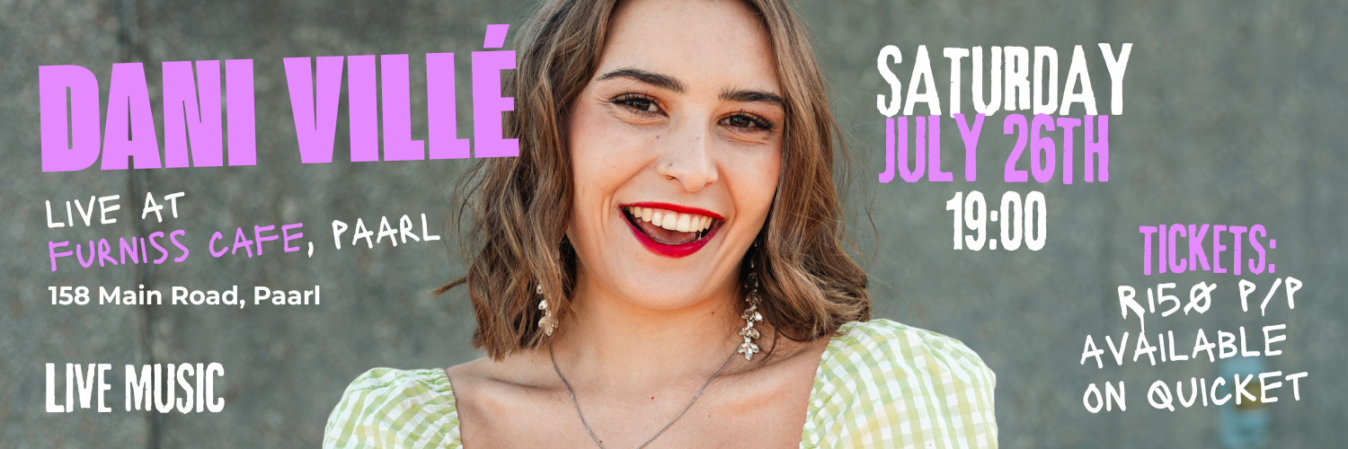 Join us for a cosy winter evening at Furniss Café in Paarl, featuring the heartfelt sounds of singer-songwriter Dani Villé.